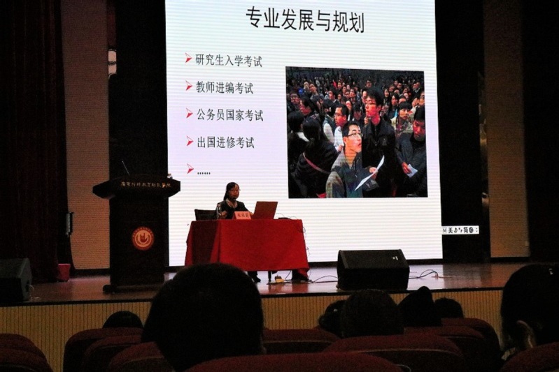 首先,张丽莉副经理对公司专业发展及学前专业团队情况进行了具体介绍,并对专业课程的设置做了详细解读。她展示了高年级同学们的学习成果,阐述了理论与实践教学的关系。她结合自身的学习和发展经历,呼吁同学们不仅要增进理论知识学习,而且要加强自身实践能力。其次,张老师还结合学前教育卓越团队培养计划,为同学们指明专业发展道路。最后,张老师分析了学前教育专业的发展前景,指出了职业规划的重要性,并在各类资格证书考试、就业还是考研等方面,进行了具体指导。