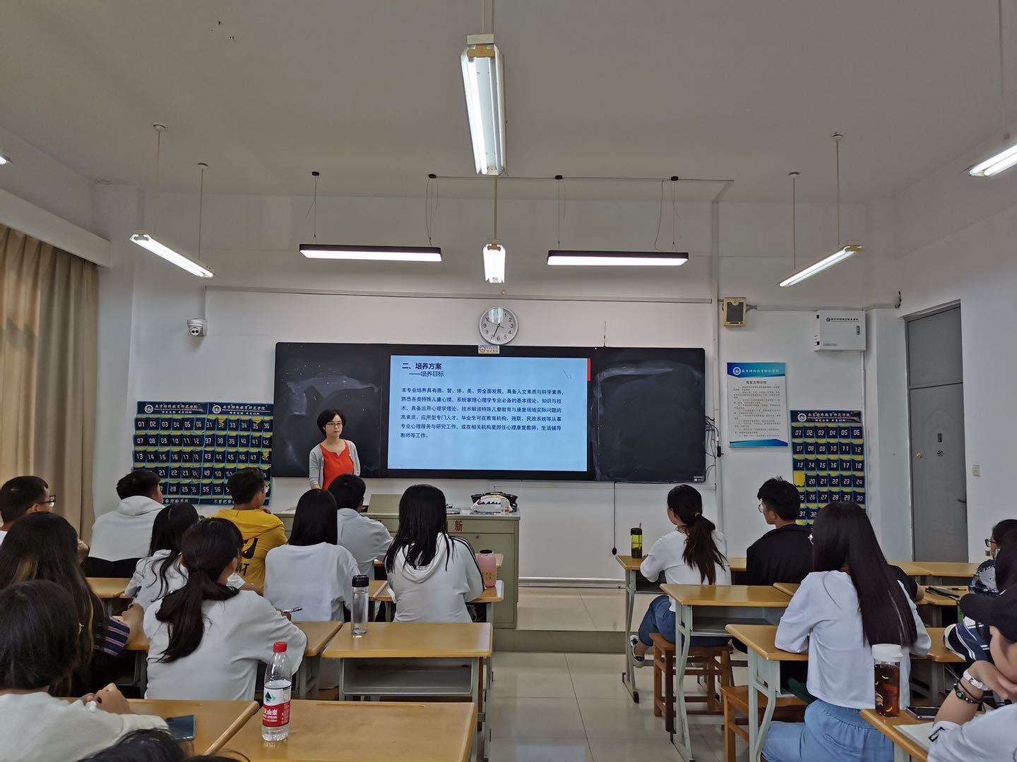 首先,心理系系主任袁媛老师从专业概况、人才培养、课程设置、团队队伍、实习实训、创新创业、融合教育成效和职业规划八个方面向2020级新生进行了细致地介绍。袁老师希望同学们能够在四年时间里扎实地掌握心理学专业知识、在实践中充分锻炼自身解决问题的能力、要具备从事科学研究的基本素养和开展心理治疗的基本能力,成为方面发展的高素质、应用型专门人才。并且强调了大学期间主动学习的重要性,要积极参与教师的科研项目,努力申报老员工创新创业项目等,为员工快速适应大学学习和生活指引了方向。