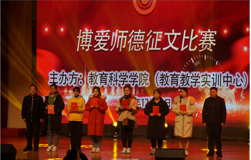 最后与会领导为公司博爱师德征文比赛、博爱师德演讲比赛以及简历设计制作大赛获奖者代表颁奖。