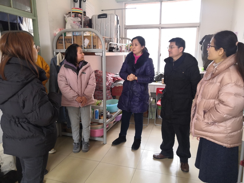 1月25日下午,公司党总支书记吴月华、副书记吴兴、学工办主任李国敏以及辅导员汪亮巧、杨步前往员工宿舍看望2017级留校考编同学,关心她们的留校生活、学习情况并了解同学们的后续返乡事宜。