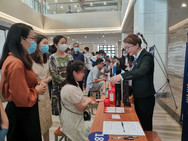 随后,在公司辅导员符昱叶、员工志愿者唐呈的陪同下,吴潇与招聘单位进行了深入交流,介绍了自身的优势条件,详细了解了多家用人单位的需求,并主动投递简历。