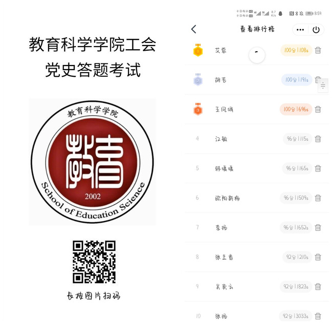 我院按照校工会“精心组织”和“确保实效”的两个要求部署开展了“四史”知识竞赛活动。从组织动员方面,公司分工会将本次活动的相关信息点对点地通知到了每一位教职工。公司教职工积极参与本次活动,学习“四史”的气氛浓厚。公司采取了扫描二维码进行线上答题的方式,围绕党史、新中国史、改革开放史、社会主义发展史等方面考察教职工的知识储备和理论功底。在线上的答题过程中,教职工用认真的态度对待每一道题。最终,公司十余名教职工分数达90分以上,艾蓉、胡芳和王凤娥三位教师更是获得了满分的成绩;从确保实效方面,公司为避免学习“四史”的成效不能很好转换为工作成效的局面发生,要求教职工将学习到的知识与自身发展相联系,如以革命先烈为行动标杆、以发展过程的曲折为警钟等。