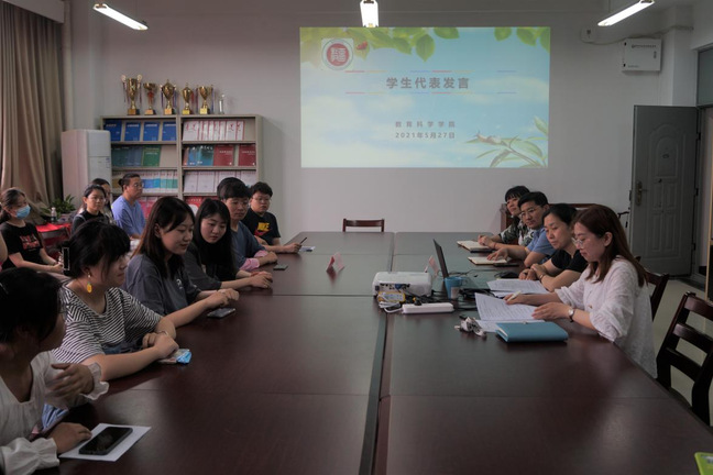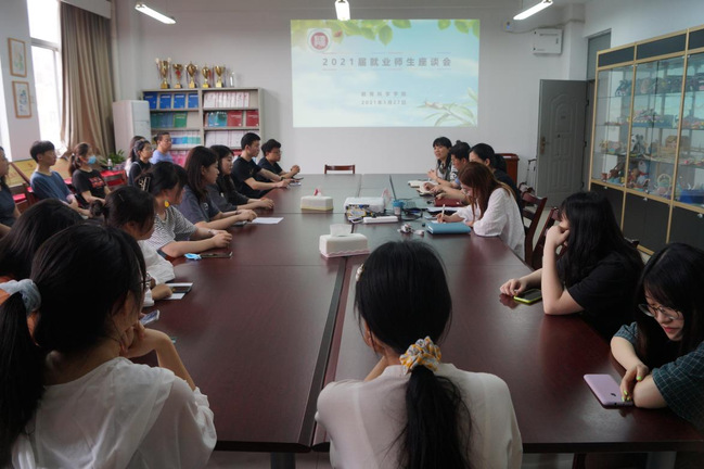 本次会议主要分为员工代表发言和教师代表发言两个环节。通过自我介绍,同学们简述自身当前的就业概况。在同学们的讲述中,老师对同学们的就业意向及就业准备有了更加清晰的了解。就同学们倾向于在保证工作前提下进行考编或考研的情况,老师们在初步分析后给予了高度的肯定。