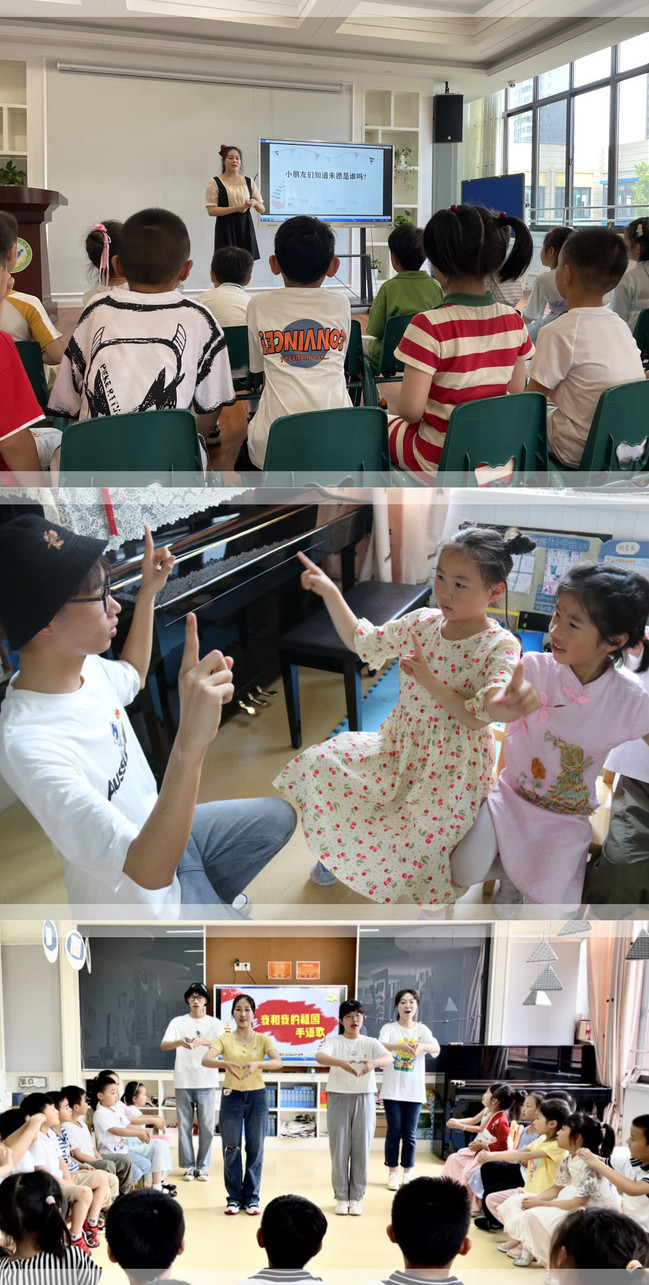 罗顺利等4位男生展演的红色舞台剧《朱德的扁担》,根据党史真实故事进行改编,真实生动,充满趣味,同时意蕴深厚。一幕幕红色经典历史情节,引导儿童深入了解在中国共产党的百年光辉发展历程中,革命先辈们不怕牺牲、艰苦奋斗的故事,深受园区老师好评和小朋友的喜爱。宣讲团还为小朋友们带来了精心准备的手语歌表演教学《我和我的祖国》,同学们教的耐心、细致,孩子们看得认真,学得用心,于无声处激发了孩子们的爱党、爱国之情。