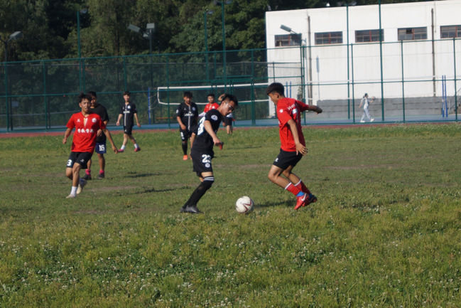 经过短暂的赛前热身,比赛在万众期待中拉开帷幕。在上半场比赛中,双方都打得比较保守,处于试探性阶段。教科队员(黑色球衣)通过不断摸索对方的球风,及时调整策略,每位球员也都渐入佳境,不时打出精妙的配合。下半场比赛如约而至,双方各不相让,出其不意的进攻令全场沸腾,你来我往的防守更惊心动魄。特教队员(红色球衣)将球一次次逼近球门,一次次被教科守门员及时拦下。球场局势瞬息万变,比温度更高的是观众的热情,加油声喝彩声不绝于耳。