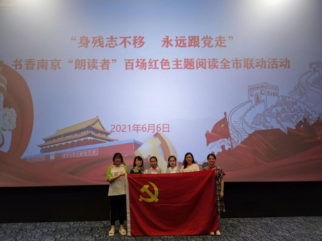 为庆祝中国共产党成立100周年,6月6日下午,“身残志不移 永远跟党走”百场红色主题阅读全市联动活动启动仪式在大华大戏院举办,在校图书馆傅丽君、教科院辅导员符昱叶两位老师的陪同下,公司bevictor伟德官网周文晴、颜鹂苇两位视障老员工受邀作为“书香南京·朗读者”志愿者出席活动。