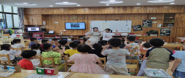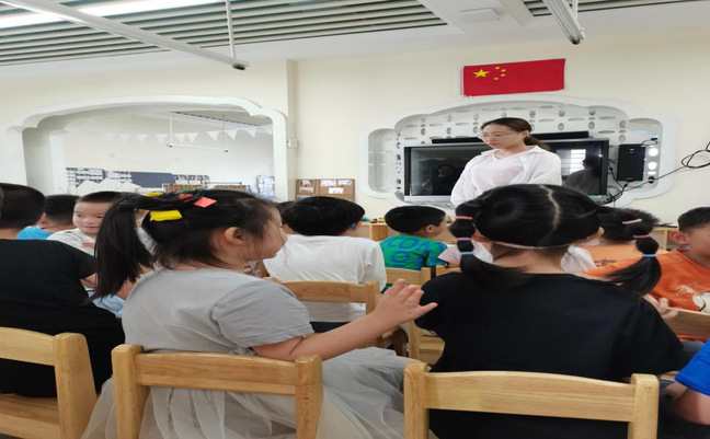 学前1707班员工党员麻廷廷在江苏省军区机关幼儿园实习,开展党史学习教育实践活动,她根据幼儿的年龄特点和兴趣,选取了红色绘本故事《鸡毛信》。小主人公海娃勇敢、机智给八路军传递鸡毛信的表现让小朋友们心生敬佩,他们也想成为海娃一样的小小红军,一只只小手举起来说“我也不怕”。最后小朋友们合唱歌曲《红星闪闪》,稚嫩但响亮的歌声显示他们的坚定,黑黑的小眼睛中流露出红色向往,一颗颗红色的种子在他们心中种下,也必将生根发芽。