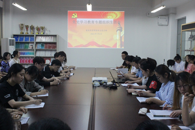 会议开始前,汪亮巧老师带领在场党员共同学习习近平总书记在庆祝中国共产党成立100周年大会上的讲话,鼓励员工党员加深对习近平总书记重要讲话精神的理解,激励青年勇担使命,开拓创新。随后,汪亮巧老师通报员工党支部开展党史学习教育的基本情况。支部每位党员依次发言,根据党史学习教育中自身的表现,结合自己的学习成果和工作近况发表了感悟,认真开展批评和自我批评。