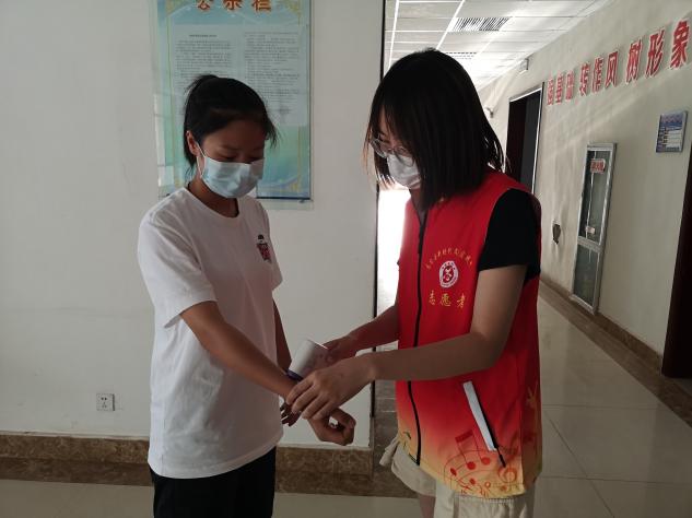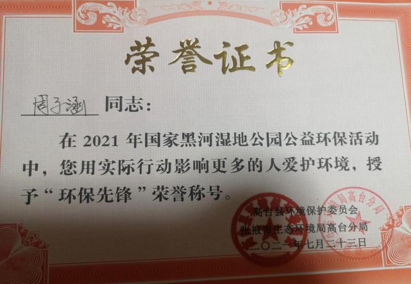 根据社区安排,周子涵负责的是去小区的每户人家排查是否有发热人员和与甘外人员接触的情况,并做好具体情况的记录。当排查任务结束,周子涵又被分配去小区门口,对外来人员进行登记、量体温。首先周子涵需要让外来人员扫描桌子上微信的小程序进行人脸识别,接着在手机上做登记,手机上登记好后,再进行纸质版的登记。志愿活动结束以后周子涵这样总结:“那几天我说过最多的话就是‘您好,请您配合量一下体温,扫码进入’……”周子涵秉持着“奉献、友爱、互助、进步”的志愿精神,这次志愿活动结束后,她又马不停蹄地加入到了国家黑河湿地公益环保活动中去,