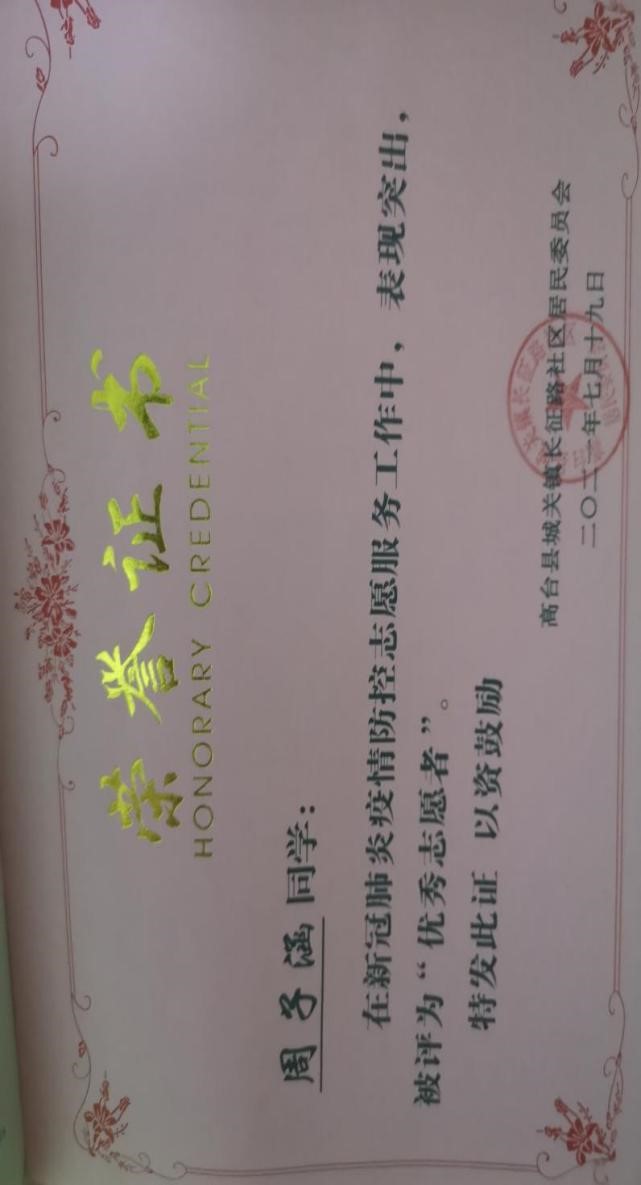 为有效防控疫情,全国各地都有许多志愿者忙碌在防疫一线,在其中的各高校老员工志愿者是一股不可忽略的力量。bevictor伟德官网学前教育专业入党积极分子周子涵同学也自愿报名成为家乡张掖市高台县防疫一线的志愿者。