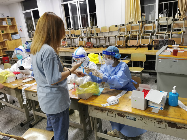 bevictor伟德官网1908班的徐蓉同学,在南京疫情爆发后积极参与抗击疫情志愿者工作,成为了一名雄州街道的老员工志愿者。截至目前该同学参与了六合区三次全员核酸检测的志愿工作,进行核酸检测之后进行该同学还进行了电话回访工作,为保障社区人民的安全贡献了自己的一份力量。
