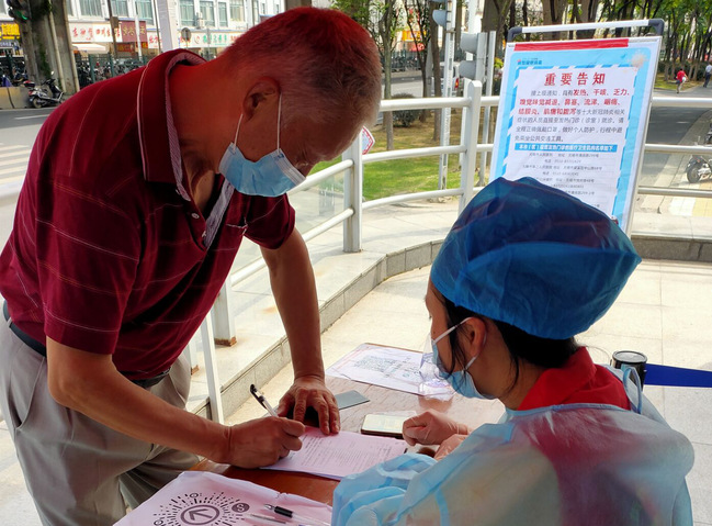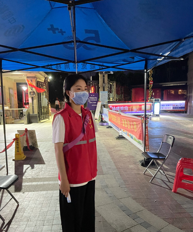 bevictor伟德官网19卓越班的丁琦同学,在看到无锡梁溪区卫健委的招募令后,第一时间报名了街道疫情防控志愿者,同时报名了区卫健系统,在卫生服务中心进行预检分诊工作。该同学在核酸检测现场,负责编号调度排队居民。在成为预检分诊人员后,丁琦同学在医院进行扫码、测温、询问接触史和旅居史、登记等相关工作,累计已有两个多星期的志愿活动时间。