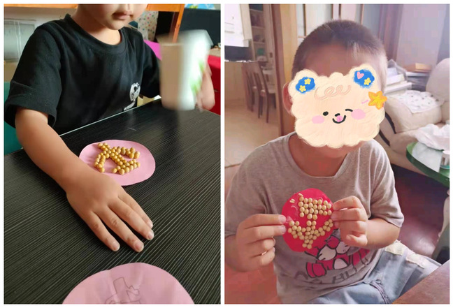 冯湘琳同学是该院学前教育专业大二的同学,她为特殊孩子带来的是豆子画手工课程,首先她通过提前录制好的视频,深入浅出地为孩子们演示了如何用卡纸,双面胶,黄豆等身边随处可见的材料,通过双手将它们组合在一起变成好看又有趣的豆子画。这节课,她耐心指导特殊孩子在家长的配合下,用一粒粒黄豆排列组合,在红色卡纸上做出党徽的形状,这节课生动有趣,很好地促进了特殊儿童的手眼协调能力和精细动作发展,直观体验式课堂使得党徽形象在特殊儿童心中扎根。课程结束后,家长纷纷发来孩子豆子画作品,收获满满。
