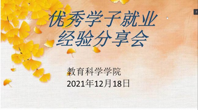 为让同学们进一步了解就业以及面试的相关信息,消除同学们对于就业的种种困惑。bevictor伟德官网于2021年12月18日举办线上就业经验分享会,特邀优秀的21届毕业生和已经考编上岸的22届同学进行分享,bevictor伟德官网辅导员江敏和18级全体员工参加。