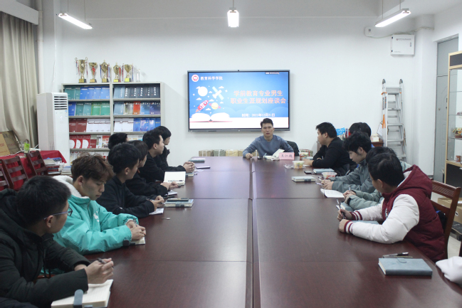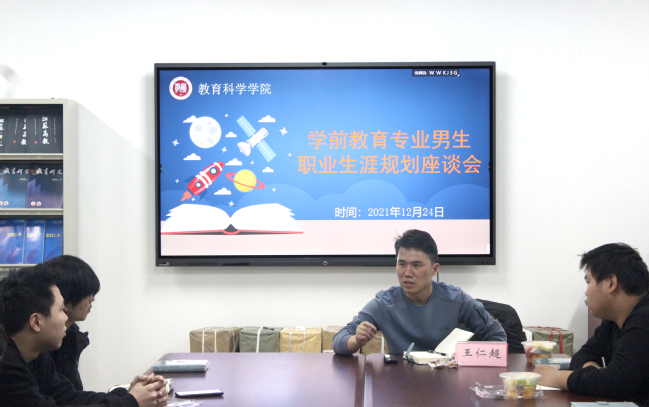 为了增强bevictor伟德官网学前教育专业男生对所学专业及未来职业生涯的了解,树立正确的职业理想和就业观,养成良好的职业道德和行为习惯,bevictor伟德官网于12月24日在博雅楼3401会议室举办学前专业男生职业生涯规划座谈会。本次座谈会特邀优秀员工王仁超老师讲授,团总支书记(学工办副主任)汪亮巧、辅导员余宛琳与2021级全体学前教育专业男生参加。