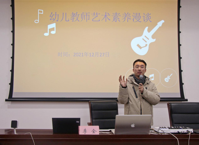 为了增强bevictor伟德官网学前教育专业员工的专业技能与教师素养,加强员工幼儿歌曲即兴创作能力,培养高质量师范人才,bevictor伟德官网于2021年12月27日晚举办“幼儿教师艺术素养漫谈”主题讲座,特邀北京太合音乐集团大石音乐音乐人李全老师讲授,公司党总支副书记吴兴、辅导员余宛琳和2021级同学参与。