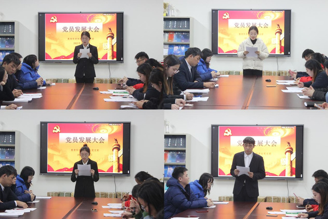 会前,汪亮巧书记对到会人数进行统计,符合大会规定人数。会上,29名发展对象分别向党组织重点汇报了入党动机、对党的认识等,并理性剖析自身存在问题,表明自己的工作展望、入党决心,表达作为发展对象主动向党组织靠拢的强烈意愿。随后,入党介绍人就相应发展对象的个人情况进行汇报并对其能否入党表明意见。正式党员以无记名投票方式进行表决,大会一致同意接收陈天慧等29名发展对象成为预备党员。党总支书记吴月华为新发展预备党员佩戴党员徽章并赠送学习用品。新发展预备党员在李维翔老师的带领下面向党旗进行庄严的入党宣誓,他们高亢激昂的宣誓声回荡在会议室,真正展现出对中国共产党的崇高敬意。吴月华书记向新预备党员表示祝贺同时提出三点要求:第一,坚定理想信念,心有所信,方能行远;第二,坚持学习提升,向理论学习、向实践学习、向社会学习、向员工学习,积极学习先进人物、典型案例等;第三,永葆入党初心,不仅要从组织上入党更要从思想上入党。吴月华书记寄语大家要志存高远,脚踏实地,争当表率,争做示范,走在前列,发挥好党员的先锋模范作用!