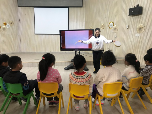 张扬老师本次执教的主题是大班综合活动《小老鼠与大老虎》,活动设计意图是通过绘本故事《小老鼠与大老鼠》,借助戏剧活动的手段,达成社会交往的目的。在活动中,张扬老师生动活泼地为孩子们讲述绘本故事,灵活运用铃鼓、头饰、多媒体等手段来丰富活动环节。张老师不仅面向全体幼儿,还能重点兼顾有一名融合幼儿,作出及时回应与行为支持,教学活动效果好。