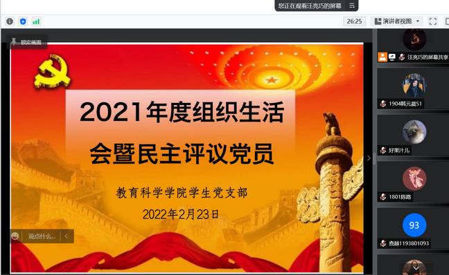 为进一步加强支部的组织能力建设,查找纠正党员的不足,党支部会前广泛展开谈心谈话,积极听取各方意见,认真查摆问题,确保本次会议有效、顺利开展。会上,首先组织全体党员观看、学习《榜样6》中张桂梅的感人事迹和精神;接着由支部书记汇报2021年度支部工作并对上半年民主评议会中支部所存在的问题整改情况作汇报;随后由公司党总支副书记吴兴针对本次民主评议党员做具体说明和要求,吴兴副书记指出全体党员对照党员标准,联系党史学习教育、自身思想、生活、学习和工作等全面开展自我批评与互相批评,深刻剖析自身不足和存在的问题,更要着重端正思想、及时整改;民主评议党员要遵守公平公正、实事求是的原则。然后吴兴副书记、支部书记、支委委员带头对照检查发言,剖析自身存在的问题,其他党员对其提出建议;各位党员同学在党小组中分别进行了个人自评和党员互评,全体党员同学开诚布公、畅所欲言,结合自身学习工作情况,总结不足和今后改正的方向。最后,全体党员认真严肃地填写了民主评议测评表。