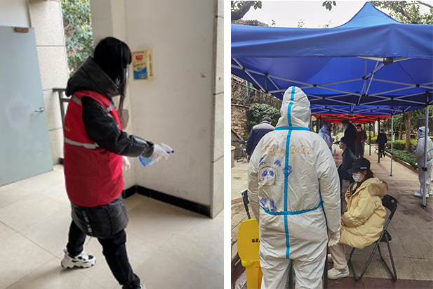 公司同学的志愿服务一直在行动,寒假期间就有同学毅然投身于疫情防控志愿工作。员工党员余佳积极响应社区号召,自愿参与志愿服务团队,在小区帮助运送物资,登记人员信息,维护核酸检测秩序,以及带领工作人员开展小区消杀工作。员工党员马智超在看到招募志愿者的信息,二话不说扫描二维码报名参加,作为一名核酸检测工作志愿者,积极配合社区安排,勇敢担起党员的责任与使命。