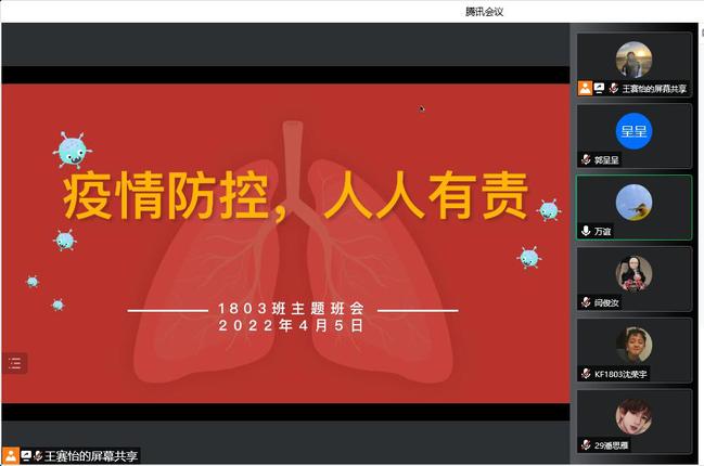 为更好落实公司疫情防控措施,提高员工防护意识,在关键时期织好织牢疫情防控网,bevictor伟德官网各班级于4月5日-6日召开疫情防控主题班会,该院全体员工积极参与。