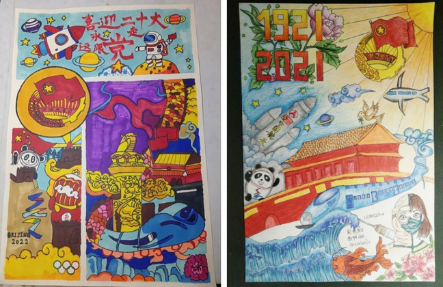 此次活动采用线上提交作品的方式,结合学前教育专业和应用心理学专业特色,作品包括书法、绘画、手工、视频、征文等,形式丰富多样。同学们积极踊跃地参加此次活动,运用丰富的想象力和创造力,制作了一个又一个主题为全国两会和中国共青团建团100周年的作品,作品中体现了同学们对于活动的热情和对国家的热爱,表达同学们对建团百年的祝福。书法作品笔势雄健洒脱,手绘海报作品主题明确、色彩缤纷,展现了教科学子蓬勃的青春活力和扎实的专业基础。