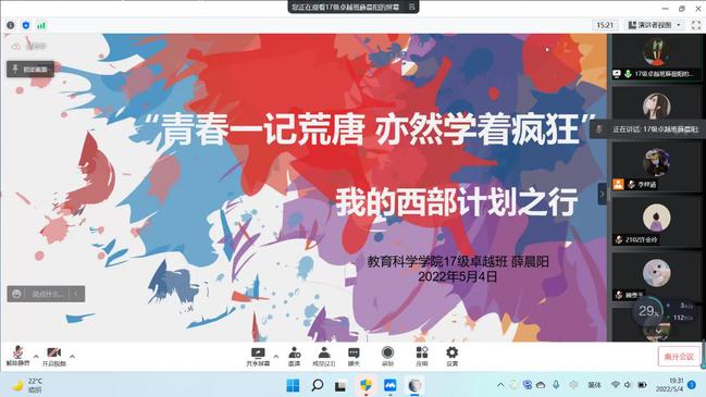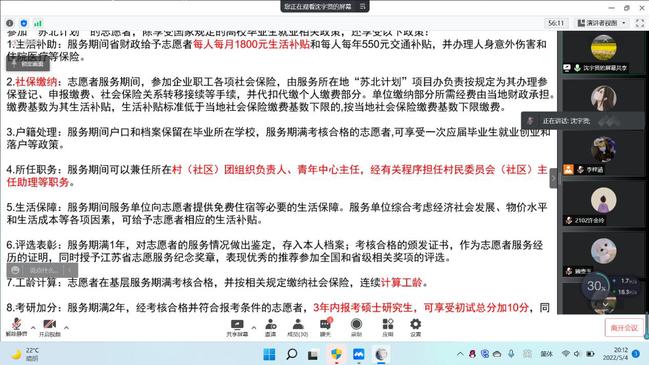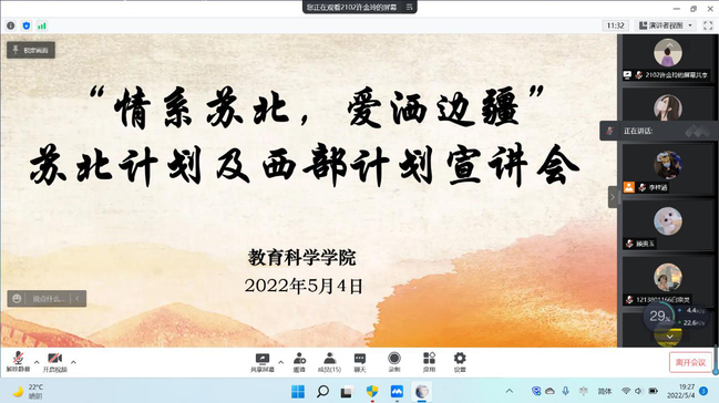 为了贯彻实施国家重大人才工程“高校毕业生基层培养计划”,引导和鼓励高校毕业生扎根基层,到祖国最需要的地方建功立业。bevictor伟德官网于5月4日晚在线上举行“情系苏北,爱洒西部”“苏北计划”及西部计划宣讲会。18、19级等同学积极参与。