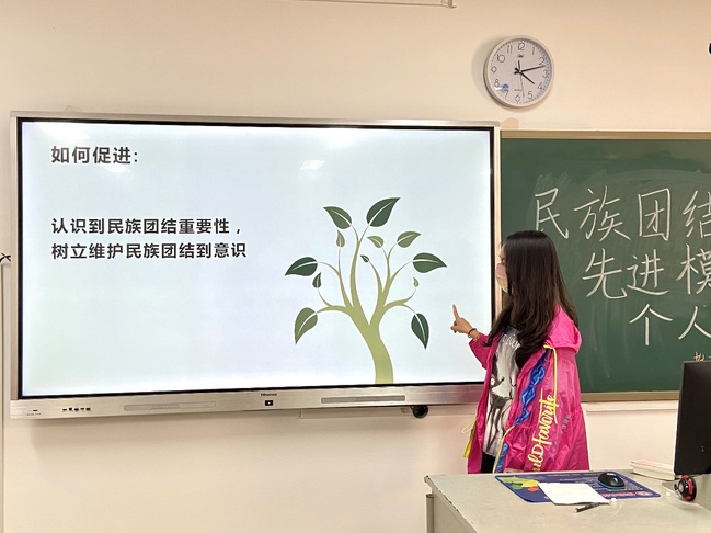 活动开始,主持人那雨琪首先介绍了本次活动的目的和流程。本次评选采用现场演讲的方式,因事未能出席的同学通过录制视频现场播放参与。参加竞选的同学紧紧围绕铸牢中华民族共同体意识,从自我介绍到个人经历再到未来展望等多方面展现自己的竞选优势。从体育足球队与少数民族同学的合作到举办“少数民族一家亲”冬至包饺子活动,都体现出大家对少数民族同学的友好与关爱。同时同学们的演讲中也包含了许多民族团结的故事,有古代文成公主进藏,更有今天帮助独龙族脱贫攻坚。除此之外,一些同学还为大家介绍了学前专业中一些促进民族特色的例子,并表示在以后的工作中会贯彻民族团结意识,使民族团结在幼儿园中开花结果。