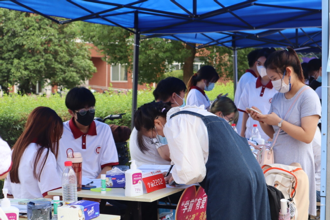 初次见你,满“新”欢喜。踏着清晨的第一缕阳光,迎新工作有序进行。迎新工作中,新生副班、员工党员和志愿者分工明确、组织有序、紧密衔接,引导并帮助新生完成了行李搬运、入学报到、物资领取、宿舍入住等各项工作,辅导员老师在新生报到处,认真安排每一项工作,现场调度志愿者,尽最大限度地为新生解决问题。在新生报到处,一排排整齐的帐篷与各个班的新生副班迎接着新生的到来。他们拿着早已整理好的资料,耐心地为新生们讲解报到流程,协助新生办理宿舍入住手续。志愿者们也积极引导新生,认真负责行李运送工作,将自己曾经感受到的温暖与感动继续传递下去。党员志愿者们耐心为新生答疑解惑,鼓励新生们好好学好专业课程,积极参与课余活动。整个报到现场秩序井然,圆满完成了新生的入学报到手续,全院上下一心,新生在踏入校门那一刻便感受到了来自教科院老师与学长学姐的浓浓暖意。