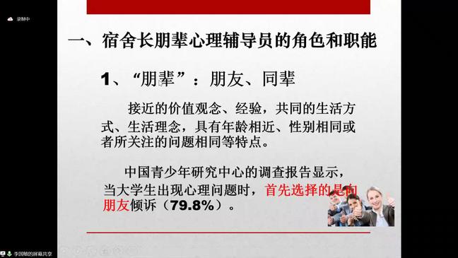 李国敏老师围绕“朋辈辅导”这一关键词展开培训,带领同学们正确认识大学宿舍对员工发展的重要作用,并详细地列举了朋辈心理辅导员的角色和职能。在了解了朋辈辅导员的重要性后,李国敏老师对心理健康的识别标准、心理异常的表现等都进行了耐心讲授,叙述了心理问题的处理方法和注意事项。通过此次培训,寝室长和心理委员进一步了解了各自的职责及发现问题的应对策略,掌握了基本的心理辅导技巧和心理调适方法,大家纷纷表示收获颇丰,相信他们将会用阳光、积极的心态科学开展心理自助及助人工作,为公司心理健康教育工作助力。