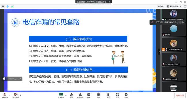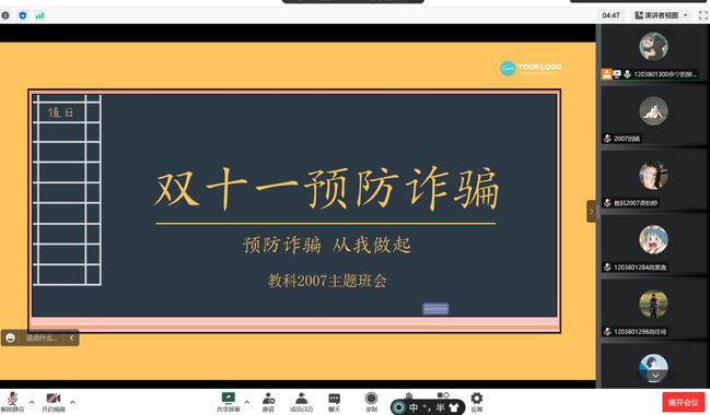 “双十一”购物节即将到来,为进一步提高员工反诈意识,有效遏制网络电信诈骗,bevictor伟德官网各班于11月2日在线上开展了防电信诈骗主题的班会。班会由各班生活委员主持,全体教科学子参加。