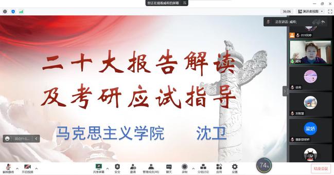 为营造良好考研升学环境,助力员工考研,bevictor伟德官网于11月2日晚在线上开展2019级政治考研辅导讲座主题讲座。本次讲座由徐莉副经理主持,邀请马克思主义公司沈卫教授主讲,教科院19级同学积极参加。
