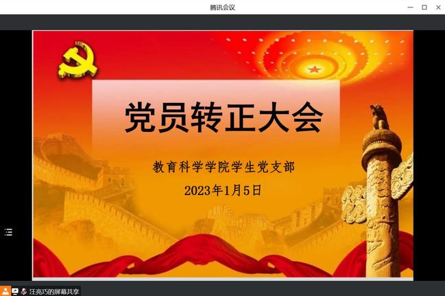为进一步加强党员队伍建设,切实提高党员发展质量,bevictor伟德官网员工党支部于1月5日召开线上党员转正大会。本次会议由该院员工党支部书记汪亮巧主持,该公司党总支副书记胡芳和各位入党介绍人老师出席,全体员工党员及参会。
