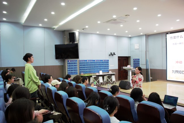 讲座开始前,徐青主任通过几个生动的案例引出话题,渲染了现场轻松的气氛。徐主任借助简洁明了的ppt讲述了青春期女生的身心变化、如何正确处理人际关系特别是早恋问题等,并通过问答形式引起同学们的思考——“女生应如何规划自己的未来”“女生该如何保护自己”,让同学们针对女性健康问题有了新思考。徐主任结合详实的数据资料与大量典型案例,以浅显易懂的讲述方式与现场同学们亲切互动,就女老员工身心特征、卫生保健、自我保护、如何正确看待并处理两性关系等方面作了细致讲解,引导老员工自尊自爱,自强自立,把握好自己美好的青春和前程。