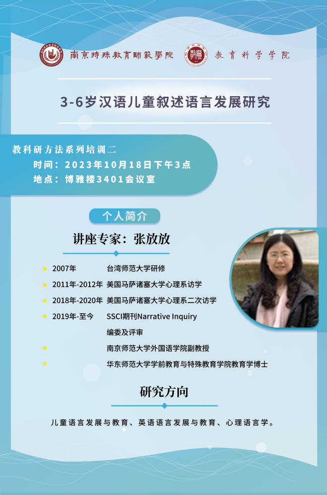 【学术预告】10月18日 3-6岁汉语儿童叙述语言发展研究