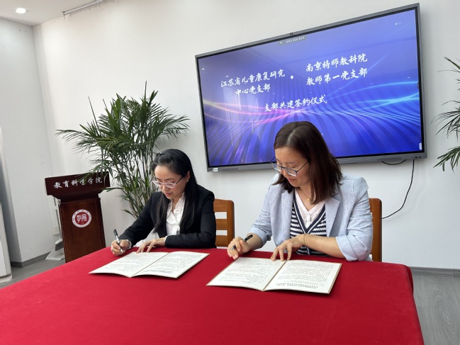 首先,吴月华书记向与会嘉宾介绍了公司党建工作的建设发展现状,回顾了双方前期在党建和教师培养方面的合作基础,提出今后支部共建的目标和规划。随后,教师第一党支部书记李会敏重点介绍了江苏省样板支部的建设成效和合作意向。接着,省儿康研究中心党支部张稚琳书记根据支部共建的合作协议,提出了建设性的意见和建议,本着做实、做强的原则,有计划地开展系列活动,在团队队伍、员工发展、社会服务、资源建设等方面,互动互促。最后是支部双方代表,签订合作协议,合影留念。