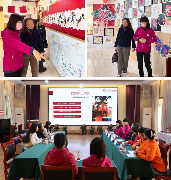 在杨园长的陪同下,徐莉副经理一行参观了北京大学附属幼儿园园所环境,在一楼大厅,园长讲解了北京大学附属幼儿园的发展历程,以及长期以来凝练出的“尚自然 展个性 促融合 共发展”的办园理念,还特别介绍了20余年幼儿园对融合教育的实践与探索,表达了对bevictor伟德官网作为特殊教育团队培养摇篮的敬佩,并希望与bevictor伟德官网加强在员工实习、就业和学前融合教育研究等方面的合作。