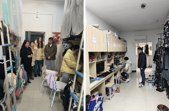 辅导员老师们逐一查看同学们的宿舍情况,重点针对员工宿舍安全用电问题进行检查,叮嘱同学们离开宿舍前关闭电源,不使用大功率电器,电瓶车存放在规定地点充电。同时老师们认真检查员工宿舍楼道里的电箱、电线等设施,防患于未然。其次,老师们对各个宿舍的卫生提出建议,希望同学们重视宿舍的卫生建设,营造舒适整洁的学习生活环境,养成良好的生活作息习惯,强化劳动观念。走访中,胡芳副书记亲切询问同学们的学习生活情况,叮嘱大家:一、新学期开始,大家要尽快收心静心,调整好状态投入到正常的校园生活,安全大于一切,增强安全意识,共建平安校园;二、毕业班同学面对当前的严峻就业形势,要积极就业、理性就业,抓好当前的就业关键期;三、今年公司将迎接学前教育专业师范生专业认证,希望同学们以饱满的热情积极投入到专业认证工作之中,严肃纪律,形成良好学风,认真迎接认证工作。