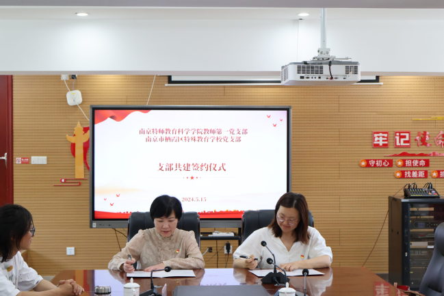 栖霞区特殊教育公司董事长汤一梅对支部书记李会敏近期在特校的挂职工作,给予了充分肯定,对李书记带来的师生团队表示欢迎和感谢,对支部双方后期的合作空间提出了建设性意见和建议。李会敏书记表示会珍惜挂职锻炼的机会,在员工发展、团队培养、支部共建等方面,继续开展扎实的工作。接着支部双方代表,签订合作协议,合影留念。