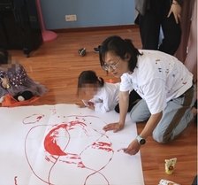 与此同时,范诚老师带领12位小朋友在三楼律动室,开展画出“星”声艺术绘画疗愈活动。范老师通过播放轻松愉悦的音乐,引导幼儿进入一个轻松的氛围。随着音乐的起伏,孩子们手持彩色手绢,跟随着旋律舞动。在音乐的熏陶下,纷纷拿起画笔,自由地挥洒着色彩,表达着自己内心的情感与想象。特殊儿童的绘画作品让在场的师生啧啧称赞。