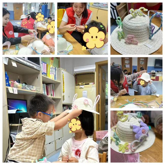 接下来的环节是草帽派对,教科院的员工党员们首先向孩子们介绍了装饰草帽所需的材料和技巧,然后耐心引导他们动手制作。在小组合作的氛围中,孩子们挥洒创意,用扭扭棒和小公仔装点自己的草帽。完成制作后,孩子们自豪地戴上自己的作品,互相展示并拍照留念。这一顶顶小草帽不仅是一件件手工作品,更是他们努力和坚持的见证。