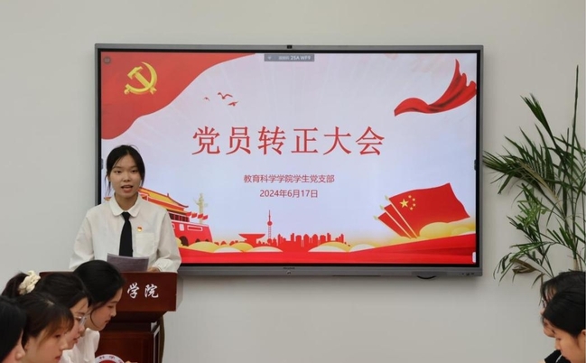 会议伊始,由主持人刘智慧老师介绍本次会议流程及事宜,宣读本次转正的预备党员名单。预备党员们认真宣读转正申请书,汇报了自身在预备期间思想、工作、学习等方面的表现,表明自己加入中国共产党的坚定决心。入党介绍人和支部委员会分别介绍了同志们在预备期间的表现及教育、考察情况,均同意他们按期转正。转正党员表明态度,表示若顺利转正,在今后的学习生活中,会牢记党的初心和使命,严于律己、恪守职责,不断提升自身综合素质,努力争做人民满意的中国共产党人。