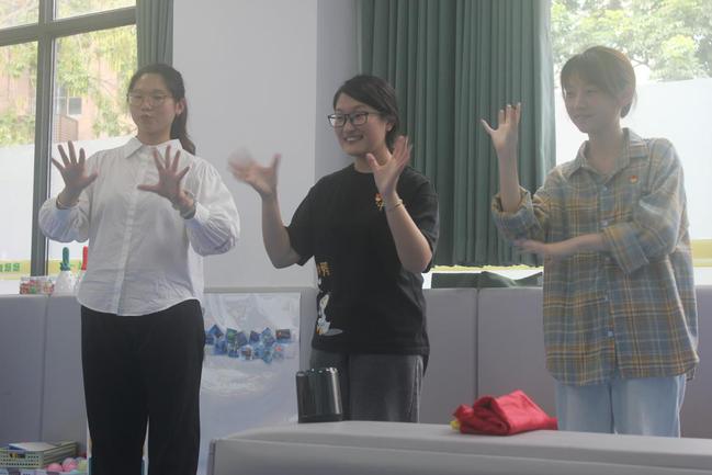 最令人感动的是,党员志愿者选择用手势舞来教授孩子们《红星歌》。在志愿者的引领下,孩子们用双手舞动出对歌曲的理解,每一句歌词、每一个动作都凝聚着他们对这首歌的热爱和对红色文化的认知。随着音乐的节奏,孩子们跟随着党员志愿者的手势,一遍遍练习,歌声与手势舞交织成一幅充满欢声笑语的美好画面。