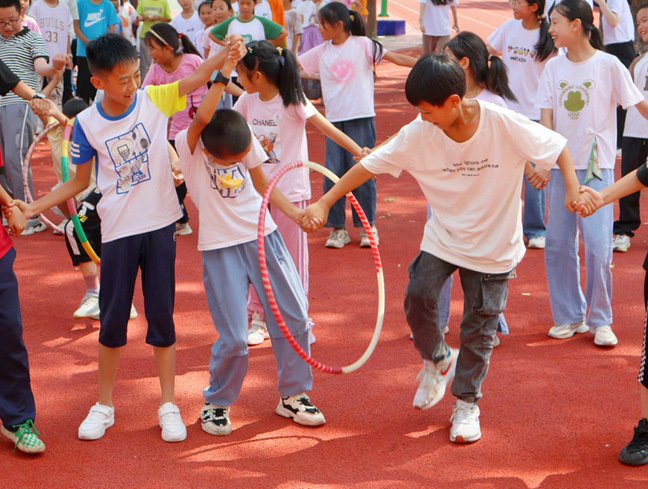 在充满活力与欢笑的下午,彩色的呼啦圈在空中划出一道道绚丽的弧线,孩子们沉浸在游戏中。传递呼啦圈的游戏,既考验速度,也考验团队协作。大家围成一圈,手牵手,心连心,随着呼啦圈的快速流转,笑声和欢呼声此起彼伏,汇成一首动听的交响曲。每一次成功的传递,都是对队友的信任和支持;每一次失误后的鼓励,都是友谊的见证和加深。
