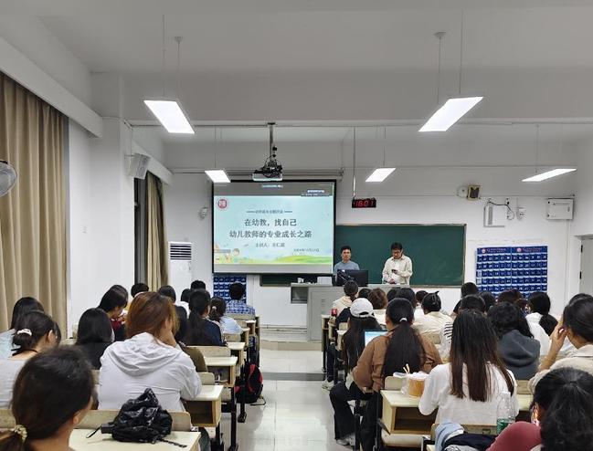 2024年10月17日,bevictor伟德官网在博雅楼举办了“在幼教,找自己——幼儿教师的专业成长之路”幼师成长主题沙龙。此次活动特别邀请了优秀员工王仁超老师作为主讲嘉宾,2023级辅导员李维翔老师主持,学前教育专业2023级和2024级全体员工通过线上线下方式同步参与。