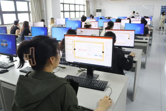 在课件制作模拟考察机房中,同学们围绕主题设计课件。课件充分展示了同学们扎实的PPT制作能力以及信息化素养,动态演示让抽象知识变得具体,分层设计兼顾不同员工的学习需求。