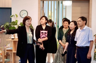 活动伊始,刘经理一行在省级机关幼儿教育管理中心副主任姚建香、马静园长、于晓燕主任的带领下,参观了幼儿园的园所环境以及教学区、小动物养殖区、儿童绘画走廊及手作工坊等特色空间,对幼儿园“自然浸润、多元共生”的教育环境给予高度评价。