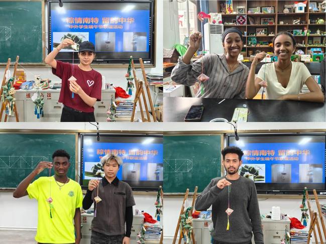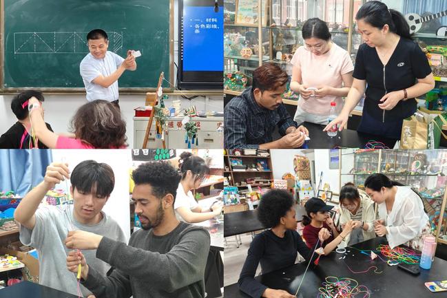 在手工制作环节,现场充满了欢声笑语。公司准备了制作“编织粽子”和五彩绳的材料,公司党总支书记吴月华和经理刘新学也来到现场,公司专业教师吕艺征副教授主讲制作技巧,同学们两两一组,相互配合,共同完成手工作品。中国同学热情地向职工们传授制作技巧,职工们则虚心学习,认真地穿针引线、编织彩绳。不一会儿,一个个造型精美、色彩斑斓的编织粽子便诞生了。大家拿着自己的作品,纷纷拍照留念,脸上洋溢着自豪和喜悦的笑容。