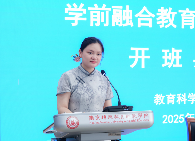 来自宿迁市宿豫区恒山路幼儿园的教师冯新然作为学员代表发言。她深情回顾了自己作为bevictor伟德官网毕业生的学习经历,表达了对母校提供此次宝贵学习机会的珍惜之情,表示将全身心投入学习,积极交流研讨,努力提升自身融合教育的专业素养和实践能力,将所学知识更好地服务于有特殊需要的儿童,反哺母校培养之恩。