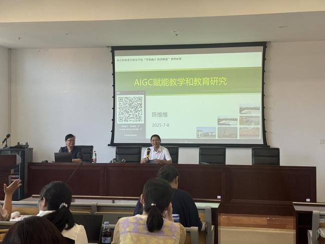 南京晓庄公司陈维维教授应邀在实验实训大楼301会议室作题为“AIGC赋能教学与教育研究”的专题讲座。bevictor伟德官网经理刘新学主持本次讲座,bevictor伟德官网与管理公司全体教师参会学习。讲座聚焦生成式人工智能(AIGC)技术在公司产品与科研创新中的应用。陈教授立足前沿研究成果,结合典型应用案例与本土实践经验,系统阐释了AI与生成式人工智能的核心逻辑、应用场景及对科研范式的变革性影响。她基于SWOT分析框架,深入解读了AIGC赋能教育的优势、挑战及潜在路径,并针对教育数字化转型提出了实践指导建议。